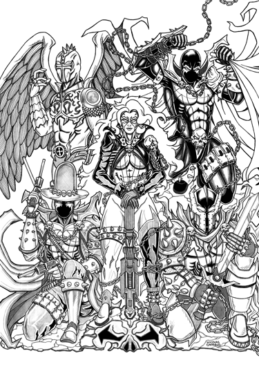 "A collection of 50+ heroes and villains illustrations."